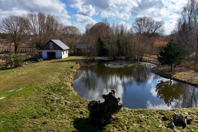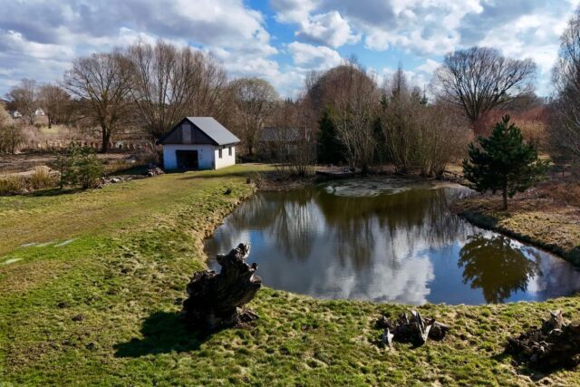 oczko wodne z rybami, które nadaje nieruchomości wyjątkowy, klimatyczny charakter