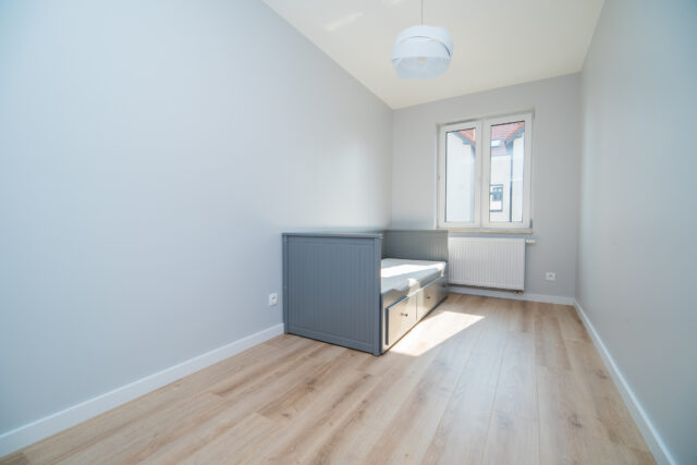 Dwie sypialnie – jasne, ustawne pomieszczenia, częściowo umeblowane, idealne jako sypialnia główna, pokój dziecięcy, gabinet lub pokój gościnny.